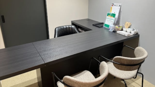 黒と木目を基調とした店内は都会の真ん中にいることを忘れるような落ち着いた雰囲気で、安心して相談できますよ。